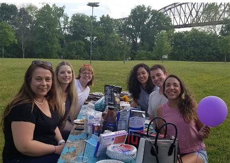 The Brown lab celebrated with a picnic when student Jessica Taylor, second from left, passed her qualifying exam.
